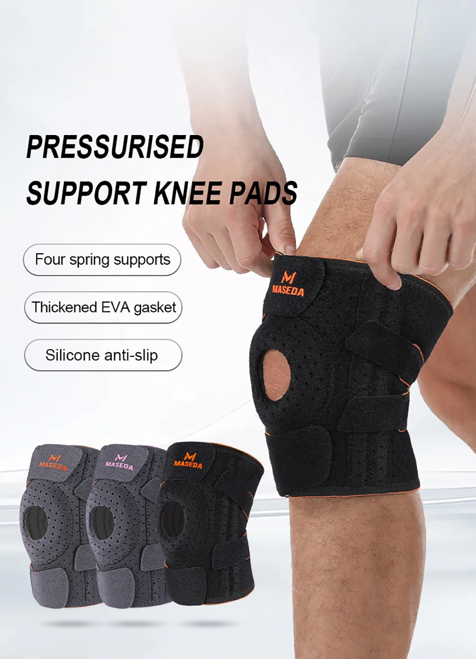 1Pcs Knee Pads Spring Support Thickened EVA Gasket Silicone Anti-slip Stabilize The Patella Breathable Knee Support Men Women