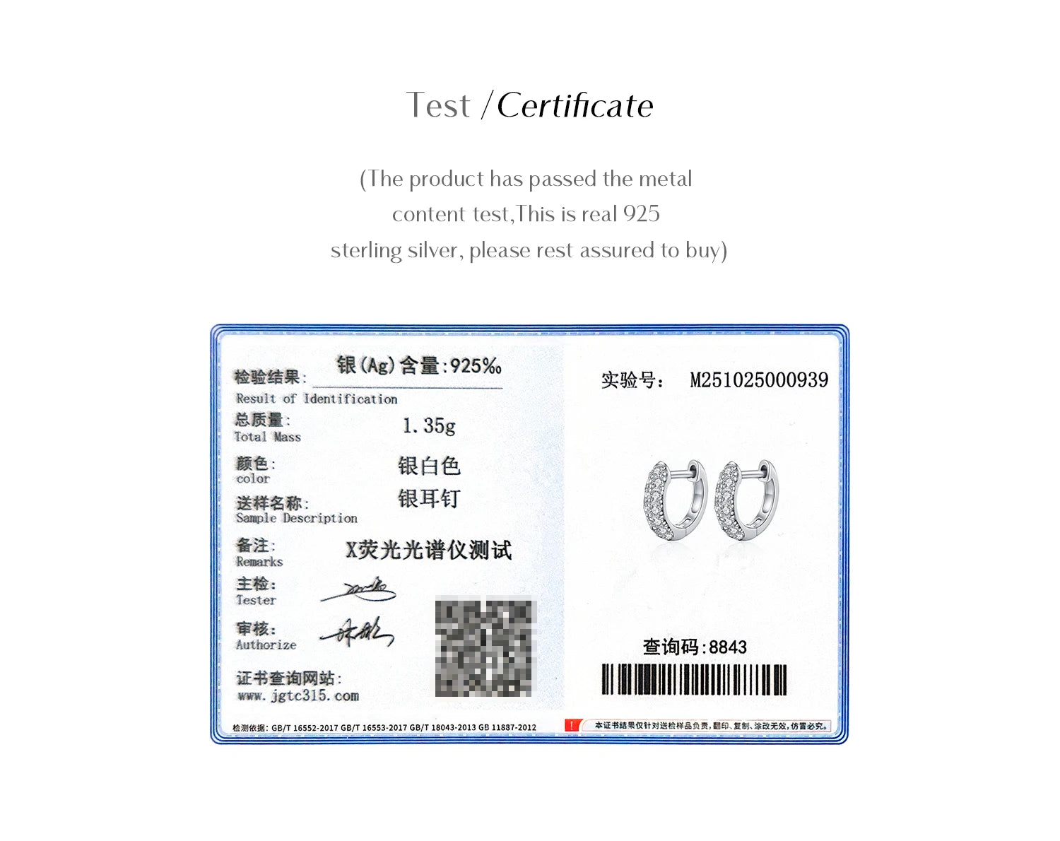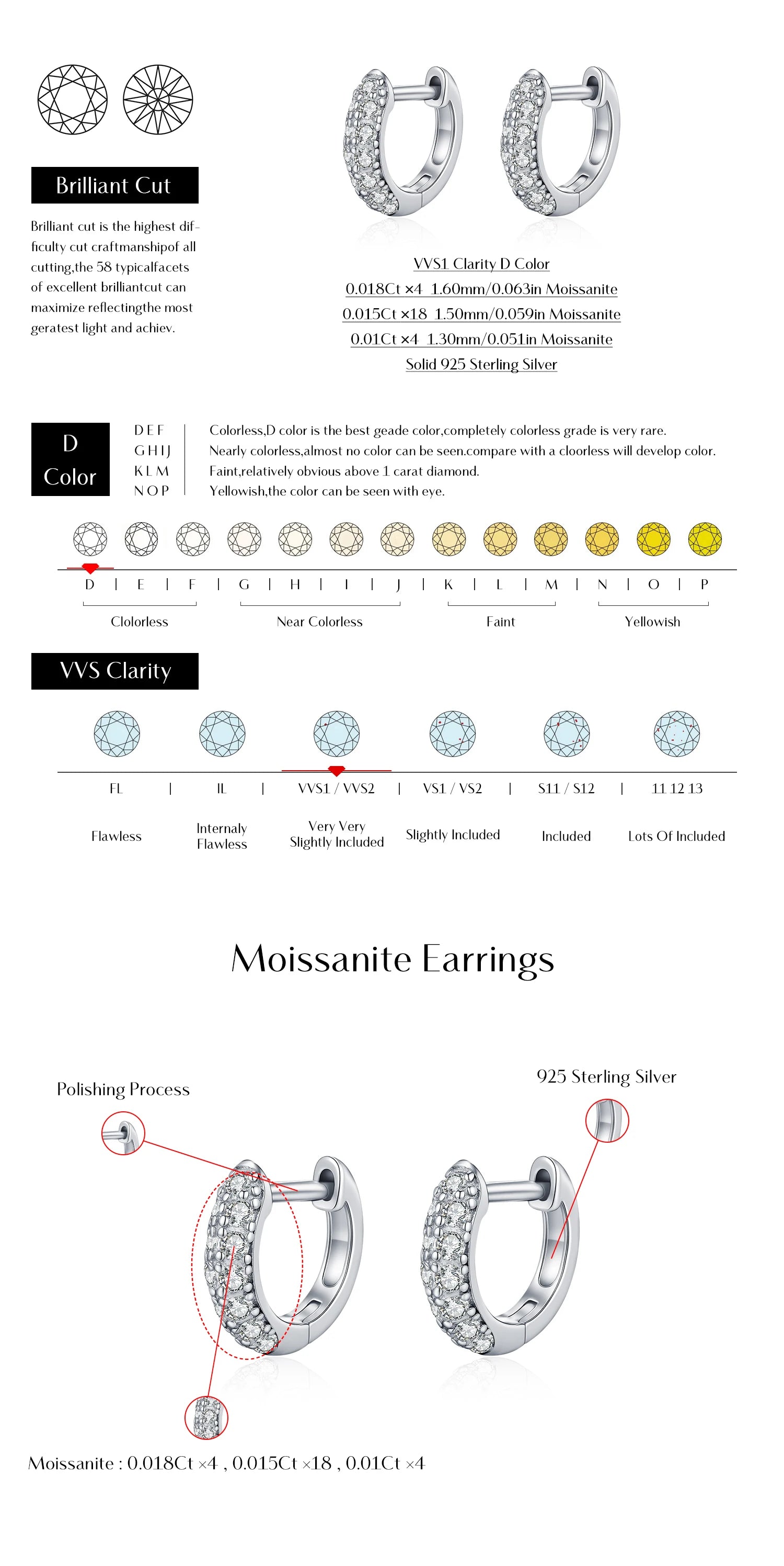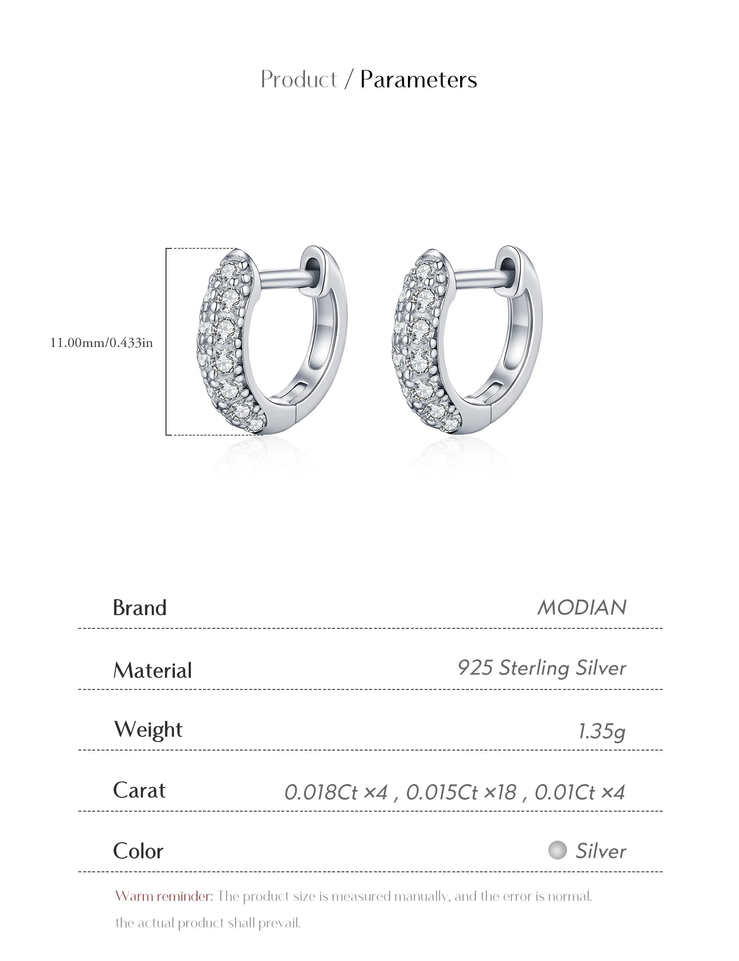 MODIAN D Color Sparkling Moissanite Circle Ear Buckle 925 Sterling Silver; cute ❤️